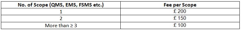 UKIAF will charge per Accreditation Scope( ex. QMS, EMS, FSMS etc)